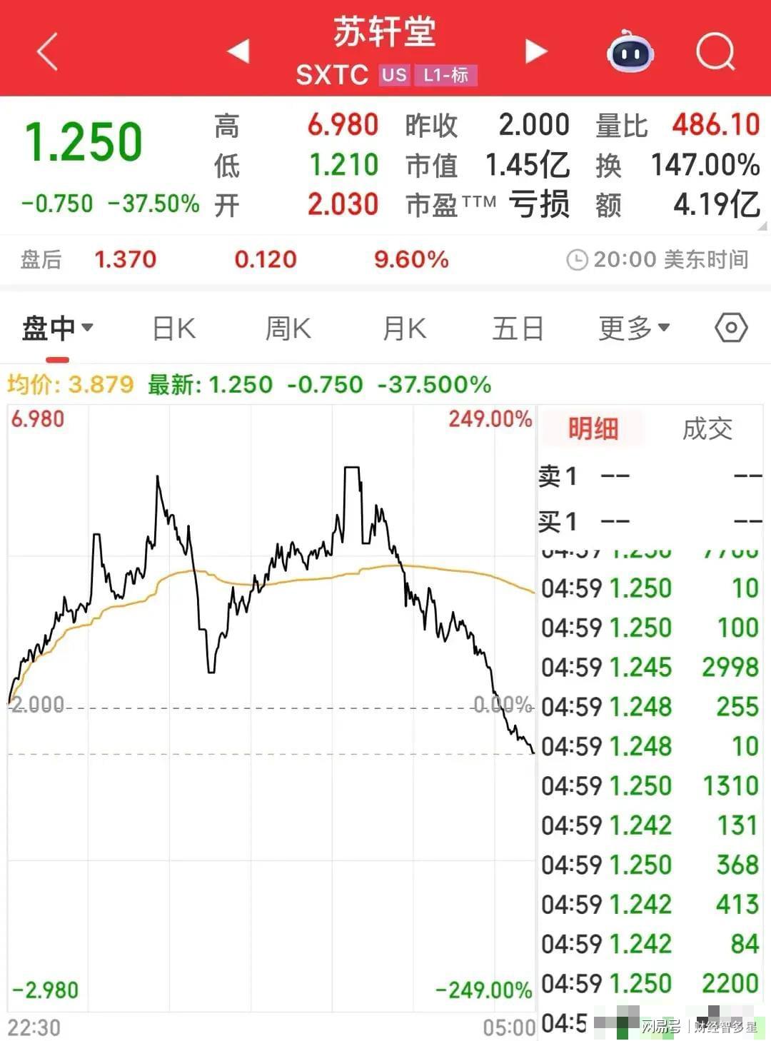 但就这只中概股苏轩堂让追进去的投资者傻眼了,如果看到大涨追击去,那么就可能套在里面,而且是深套,所以有投资者感慨美股的风险太大了!