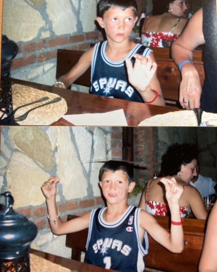 儿时的马穆穿着马刺1号球衣,冥冥之中自有天意