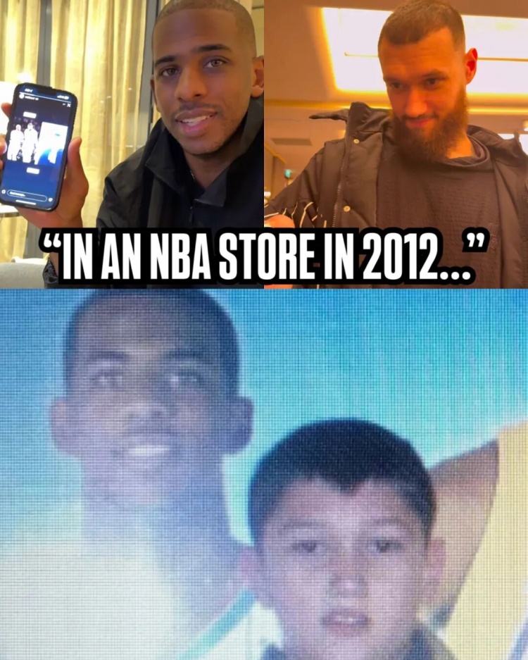 2012年的马穆在NBA商店和海报里的保罗合影,2025年两人成了队友